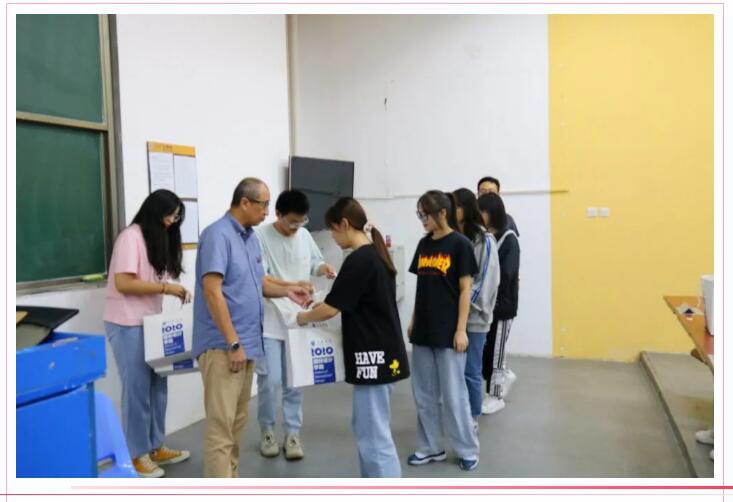 学院特邀艺术暨国际设计学院院长吴晓淇教授及院长助理孙晋博博士在今天的专业入门指导课上为学生们颁发切割板和钢尺。在这种倡导的背后,是希望学生存持一双善于发现的眼睛、一双灵巧的手和一个爱创新的心,同时还要存持一种哲匠的精神,用哲匠精神来树人。
