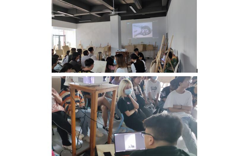 在讲座中,于晨老师结合具体作品图片以及学生在专业诉求上对基础课的认知过程回答了同学们的现场提问,引导学生如何深入学习素描和素描对后续专业课程的铺垫做了解答。