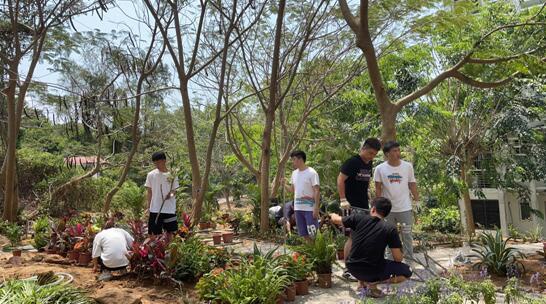 《生态规划设计》是风景园林专业的基础课程,旨在通过教学训练,培养学生面向场地的辨识、运用能力。课程的实践应用性强,教学活动的开展基于校园内的现存场地,真题真做,从样地选择、方案设计,到方案竞选、实操落地,完整模拟项目运行的全过程。课程改革的思路及操作、项目成果展,是吴晓淇教授主持的海南省高等教育学校改革研究重点项目“风景园林专业实践教学体系改革研究与实践(Hnjg2019ZD-24)”的阶段性成果。教学过程的实际运行,着重学生们团队合作精神的凝聚,方案25选7、平整场地、构型铺设、植株筛选、种植落地,无不凝结着小组成员们的智慧和汗水。烈日下的挥汗如雨,节假期间的不辞辛劳,终于迎来了任务付梓,方案开花的时刻。
