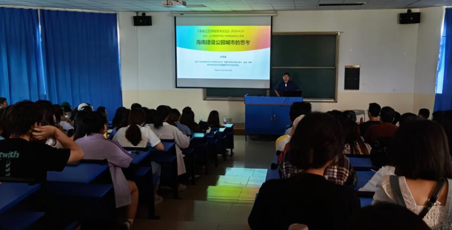 刘滨谊教用丰富的理论阐述、简明的图示、大量的图片,把人居环境学与公园城市的关系、现代城市与人类习性的关联、公园城市的决策与变量讲述得很清晰。并用了大量的例证证明城市人居环境应以风景园林“生命体建设”为引领,这才是建设公园城市的核心。同时结合海南实际情况,指出海南岛建设公园城市的必要性以及必然性。并对同学们寄予厚望,希望未来的同学们作为风景园林师,必须具有最为长远的眼光和观念,也要能顺应各类生命需要的环境诉求,并根据其内在关系合理建立彼此间的相互关系和动态变量。讲座过程持续约两个小时,刘滨谊教授的汇报内容深入浅出,引起与会教师和学生积极踊跃地向教授提出目前工作和学习中遇到的瓶颈和问题,刘教授对此进行了精彩的解答。