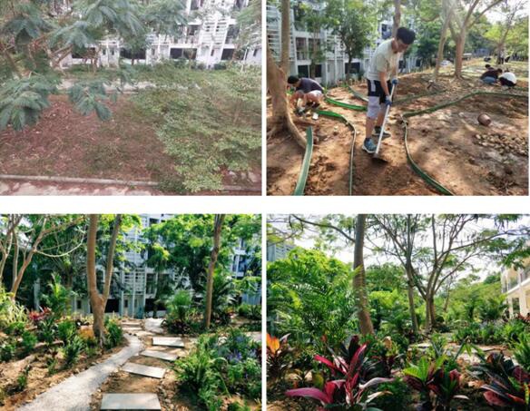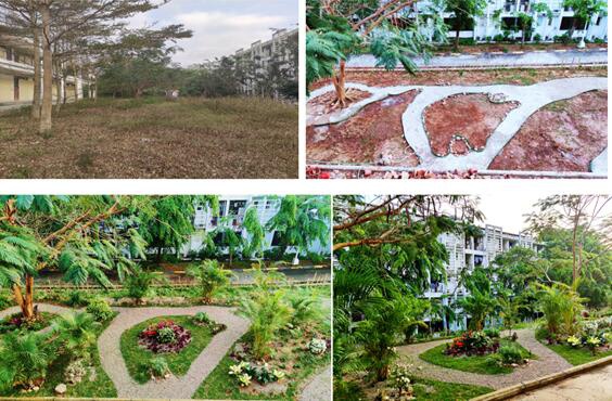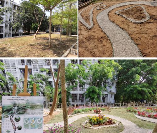 《生态规划设计》是风景园林专业的基础课程,旨在通过教学训练,培养学生面向场地的辨识、运用能力。课程的实践应用性强,教学活动的开展基于校园内的现存场地,真题真做,从样地选择、方案设计,到方案竞选、实操落地,完整模拟项目运行的全过程。课程改革的思路及操作、项目成果展,是吴晓淇教授主持的海南省高等教育学校改革研究重点项目“风景园林专业实践教学体系改革研究与实践(Hnjg2019ZD-24)”的阶段性成果。教学过程的实际运行,着重学生们团队合作精神的凝聚,方案25选7、平整场地、构型铺设、植株筛选、种植落地,无不凝结着小组成员们的智慧和汗水。烈日下的挥汗如雨,节假期间的不辞辛劳,终于迎来了任务付梓,方案开花的时刻。
