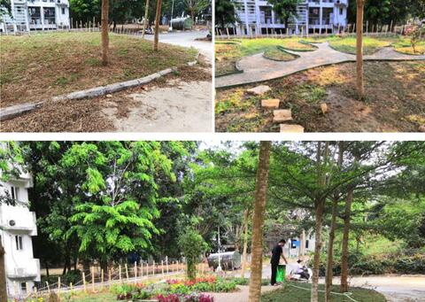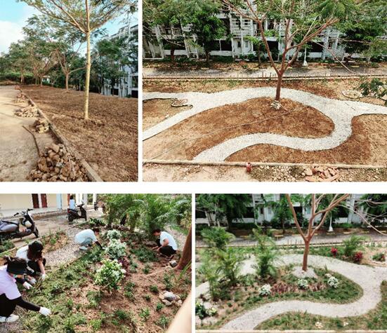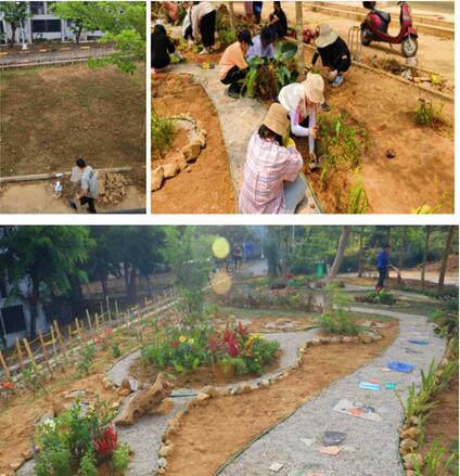 设计不再是以前只局限于理论与想象。不管在设计的时候受经费的限制反复更改方案,还是在在烈日下不辞幸苦的干活,这些过程都是蛮煎熬的,荒地变公园,从无到有,看到它如今的模样,会带着欣赏感叹二三。而创造了它的我们,得到的不仅有成就感,还有宝贵的经验与教训。
