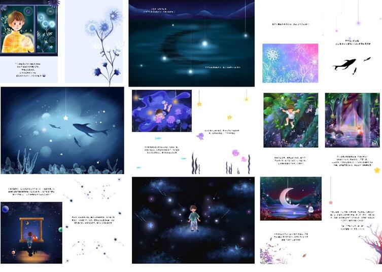 答:将星星的影子融入我想要以童话方式绘制的画面中,是想让人们在翻看绘本的同时也可以深入到类似于这类孩子内心深处的童话世界。同时让更多的人在历经世态万千,还会被片刻温暖所打动,还愿相信童话的美好,重新回忆起那个最初的自己。感受生活中的每个细节,珍惜当下才是生活的意义,人生在世总会有不称如人意,适当的放松身心,给“平庸的生活”增添点乐趣。珍藏你的可爱,保存你的善良,无所畏惧,勇敢向前,即使世界偶尔的烟云纷扰,也希望你能云淡风轻,越来越好。正如《心灵奇旅》中的一句话“灵魂是压不垮的,压垮你的是生活,坚强点,努力找到点亮自己的火花!”