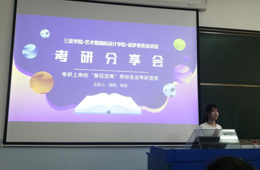 2021年5月19日15:30我院考研成功上岸的周帅同学、张欢同学在书德楼312分享了考研成功的经验与心得,艺术暨国际设计学院院长吴晓淇教授、院长助理孙晋博副教授及学业导师杨霄华老师出席了此次分享会,学院有意向考研的同学参与了此次分享会。