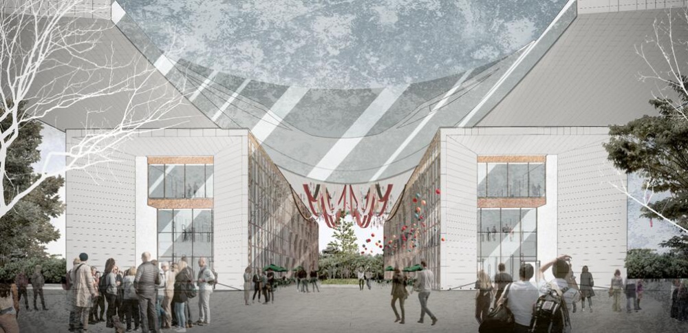 答:设计灵感来源于藤蔓,藤蔓寓意着生生不息,其意把东岸湿地公园打造为绿色生态社区。