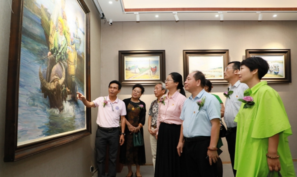 6月26日,以“百年华章 逐梦海南”为主题100幅油画作品亮相壹舍艺术馆,免费向公众开,画展中特别为中国共产党成立100周年创作的多幅红色题材油画作品受到观展人员的关注。三亚市委宣传部调研员邢洪飙、三亚市文学艺术界联合会主席张红艳出席开展仪式并观展。