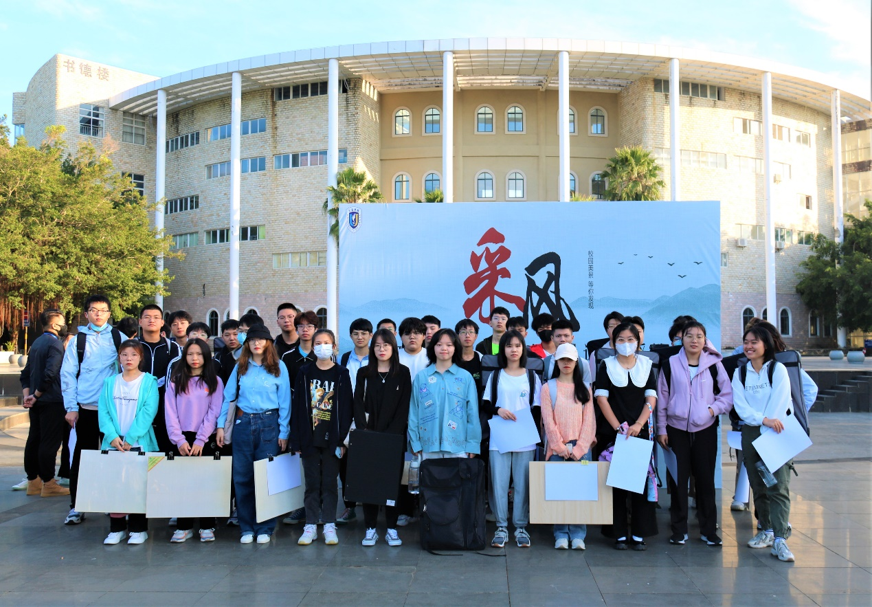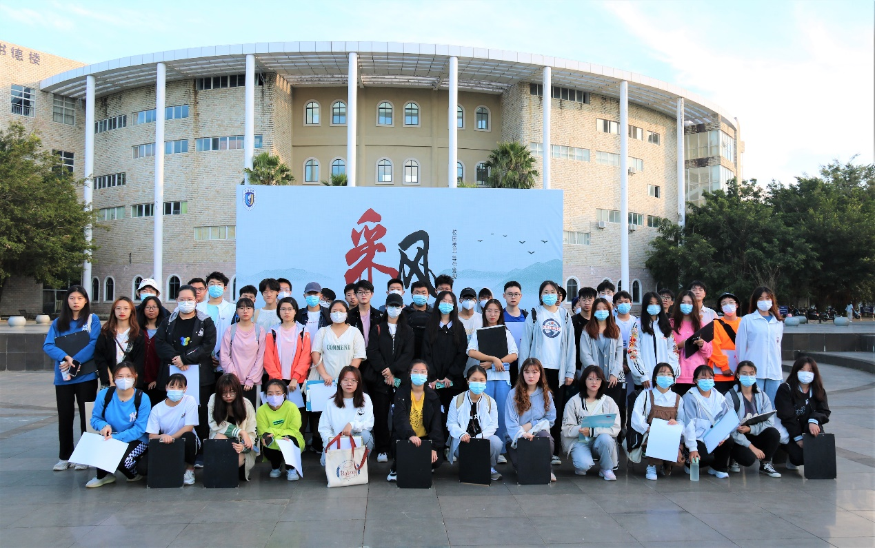 三亚的冬天依然暖洋洋,那高耸笔直的椰树犹如翠绿的衣衫,露出圆滚滚的咖啡色的椰子,阳光透过树叶之间的缝隙照射在地上斑斑点点。11月27日七点半在这样一个晴空万里的日子,艺术暨国际设计学院举办了采风大赛。各班的同学都积极此次活动,用手中的笔画出心中的美丽三院。