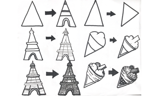 然后在此基础上进行形象展开。需要注意的是,联想的过程是基于对两种现实事物形态的仔细观察之上,去寻找两者之间形态在逻辑上联系,是眼睛所见的事实,而不是想象的形态。