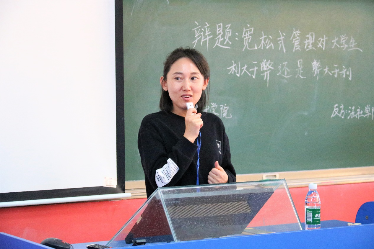 而反方是法社学院代表队,他们的立场是:宽松式管理对大学生弊大于利。
