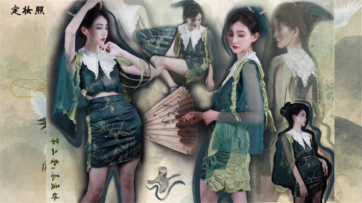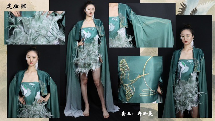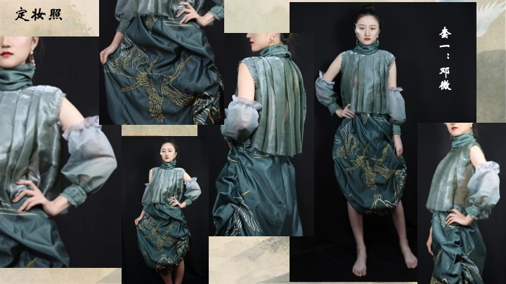 因此,近几次中国风创意服装设计专题项目实训,都提高了对国潮文化及传统服饰民俗文化的重视,在提高了学生的设计能力及手动能力之余,强调必须要在东方文化当中寻找设计创新的切入点和突破口,能讲出设计的故事,创意要新颖要有内核能打动观者,能营造氛围感和代入感。