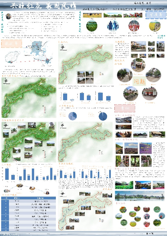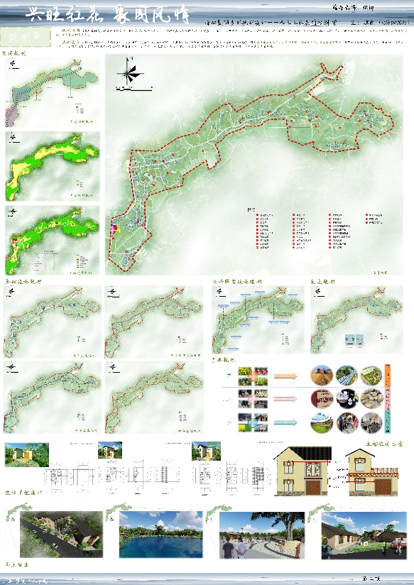上位规划作为依据,明确规划目标,找准规划定位,以红花村为例,依托红花村的自然环境资源和红花村浓厚的黎族传统文化和深厚红色底蕴,以及特有的高校资源。在加强农业种植的同时,打造高校服务配套区、生态旅居区、农业观光区、共享农庄为特色,打造配套设施完善、历史文脉延续、经济相对活跃、生态宜居的美丽乡村。学生在设计中在进行实地调研后,明确设计方案,完成道路、基础设施、空间布局、产业发展、建筑风貌、景观设计等相关内容。