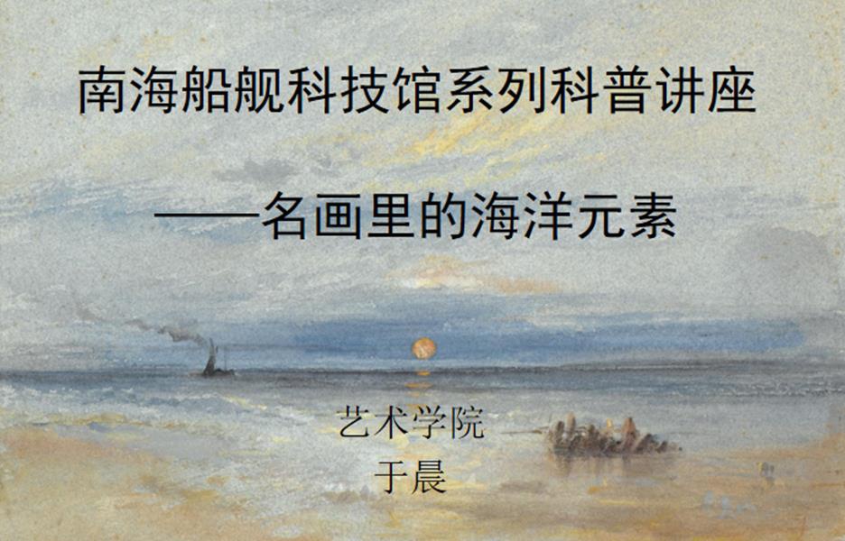 2022年4月25日,艺术学院于晨老师做了一场名为“南海船舰科技馆系列之名画里的海洋元素”线上讲座,大一环境设计专业学生聆听了讲座。讲座立足海南本土,结合海洋特色,围绕名画中的海洋元素展开,于老师从浩繁的古今中外名画中遴选了二十余幅与海洋息息相关的作品,将这二十余幅名画中对海洋元素的欣赏置于社会历史进程和人文科学发展中进行解读。讲座内容精彩纷呈,在讲座最后的讨论环节,学生们纷纷表示受益匪浅,对名画里的海洋元素有了重新的认识与解读。
