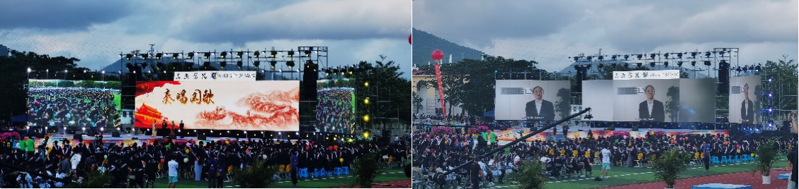 在庄严的国歌声中,毕业典礼拉开帷幕。吉利控股集团董事长、三亚学院名誉校长李书福为2022届毕业生送上视频祝福。陆丹校长送上最热烈的祝贺,希望天南海北的毕业生都鹏程万里。执行校长刘开南送毕业生最美好的祝愿,分享歌曲《You raise me up》鼓舞大家:“你们怀揣伟大的梦想,是学校的骄傲,家庭的荣光。”教师代表张巨斌鼓励毕业生面对变化,调整心态,做强自己。豪气、大气、正气!昂起头,竖起脊梁,勇敢地往前走!毕业生和在校生代表发言并祝愿2022届所有毕业生一帆风顺,前程似锦!