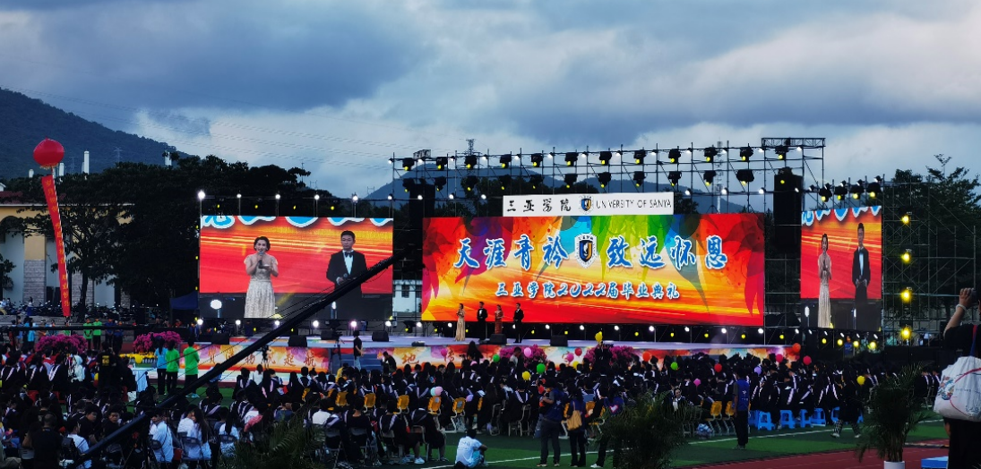 2022年5月29日18:00,三亚学院2022届毕业典礼在东校区运动场隆重举行。特邀嘉宾、全体校领导、各学院院长、各党总支书记、分团委书记、毕业班思想导师、全体专业教师、2022届毕业生到场参会。