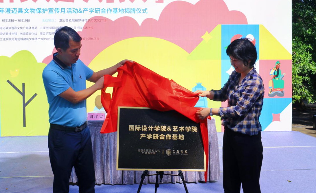 6月19日上午9:30,在罗驿村长寿文化广场,启动澄迈旅文局与三亚学院国际设计学院签订共建产学研基地挂牌仪式。参加此次活动的嘉宾有:澄迈县旅游和文化广电体育局副局长周序克;三亚学院国际设计学院常务副院长、博士陈琳;三亚学院南海地域建筑文化遗产保护研究中心副主任陈晓龙;海南省服装设计师协会副会长、三亚学院艺术学院设计系主任杨洋;中国民间艺术家协会会员、三亚学院国际设计学院产品设计专业主任郗瑞鲁等。