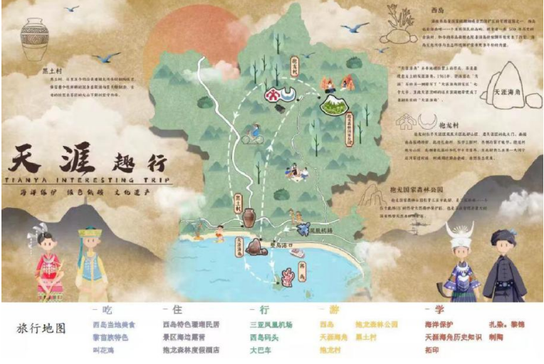 国际设计学院视觉传达设计专业、环境设计专业学生联合组队参加天涯区旅游路线设计大赛,第一赛段,我院共有2支队伍经过重重评选进入全国24强