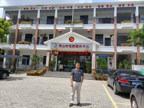 2022年6月16日上午,我院冯建章博士与“南山文化研究”团队走进三亚市崖州区南山村委会,围绕南山景区的“长寿文化”,对南山文化旅游区周边的南山村委会下辖的三个自然村,鸭仔塘村、朗坟村和椰子园村进行了调研。