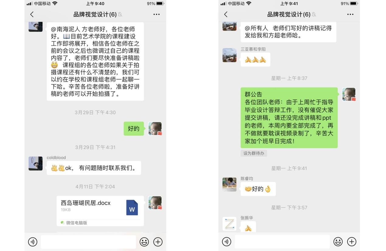 课程团队通过线上会议和微信群进行课程内容及视频录制研讨