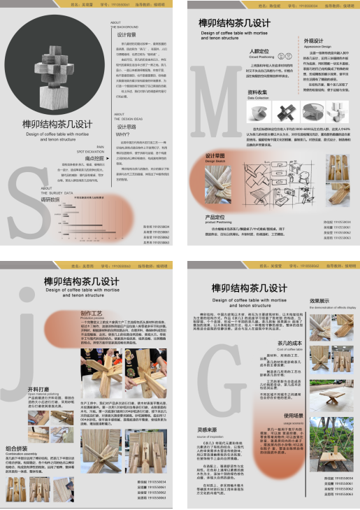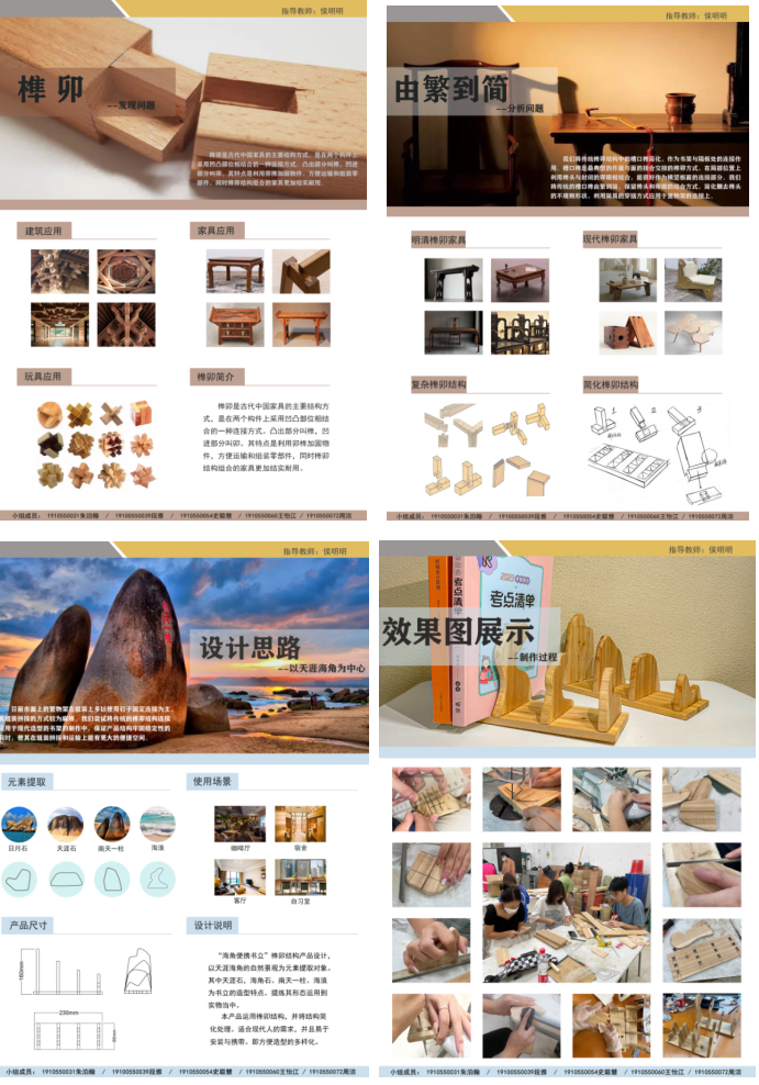 PBL项目学习第二步:应用PBL教学法组织课堂学习活动。学生先根据研究方向进行分组,教师给每小组发放案例资料,并创设一个既典型又能促进学生发散思维的问题情境引导学生开展个体学习,如“榫卯结构的传承与创新”,从结构的复原与简化设计两个方面展开设计思考,结合自身需求进行设计构思,激发学生创作情感。项目立项后小组需协作共同理解设计主题与要求,通过讨论决定解决策略与设计大方向。通过将学到的新知识应用到问题中的尝试,经历了问题的假设与研究验证,让学生的思维能力获得拓展,实现了真正意义上的开放式课堂。