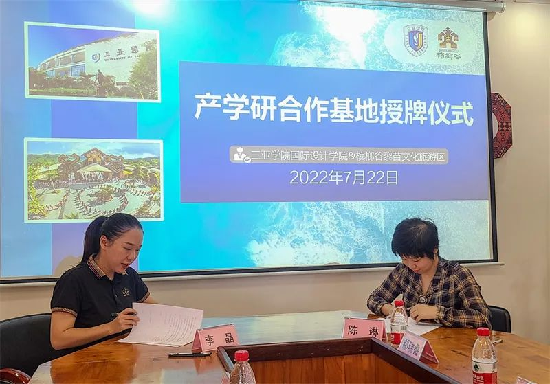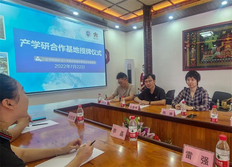为深化产教融合,推动校企深度合作,促进教学成果转化为市场竞争力,7月22日,三亚学院国际设计学院“产品设计”产学研合作基地,在海南槟榔谷黎苗文化旅游区挂牌。学院常务副院长陈琳、院长助理孙晋博、产品设计专业负责人郗瑞鲁,槟榔谷景区人力资源总监李晶、品牌推广总监雷强、产品经营中心总监徐世理参加授牌仪式。产品设计专业教师江岸飞列席。