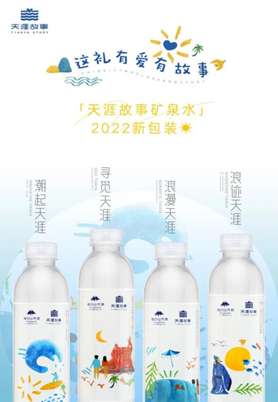 设计团队介绍,为了突出这一特点,他们在设计上采用了手绘插画的形式来增加趣味性,同时结合三亚的地域特点和文化内涵,将天涯故事分为四个系列:潮起天涯、浪漫天涯、浪迹天涯、寻觅天涯。