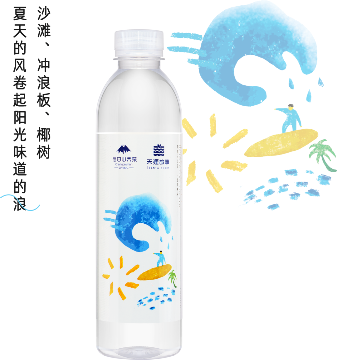 夏日、椰汁、悠长的蝉鸣和阵阵海浪构成了这座可爱的小岛,大暑炎炎,怎可缺水润养?三亚这样一个以旅游定位的城市,矿泉水作为一个”小而美“的文化载体,理应展示出与众不同的特色。