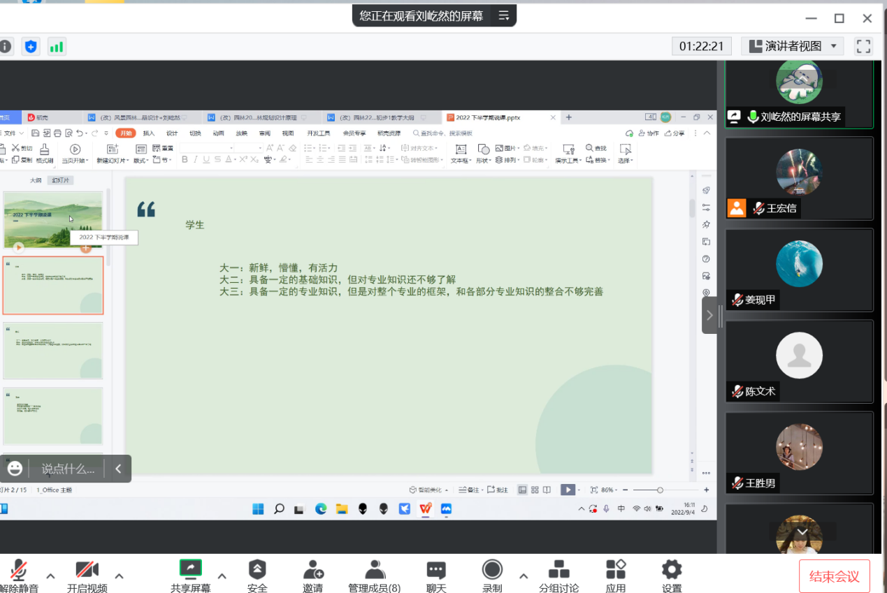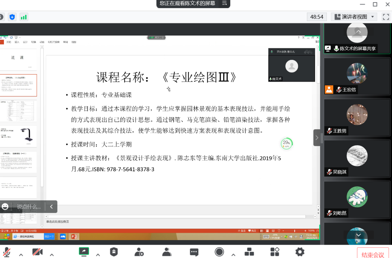 2022年9月4日下午,风景园林专业组织开展2022-2023学年秋季学期线上说课活动。