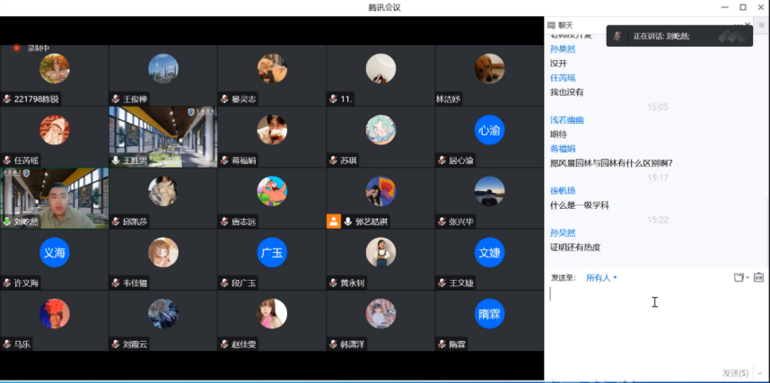 2022年9月19日下午3:00,王胜男老师和刘屹然老师为国际&艺术设计学院风景园林专业2022级新生线上答疑。针对风景园林新生最关系的问题展开了讨论并进行了解答。
