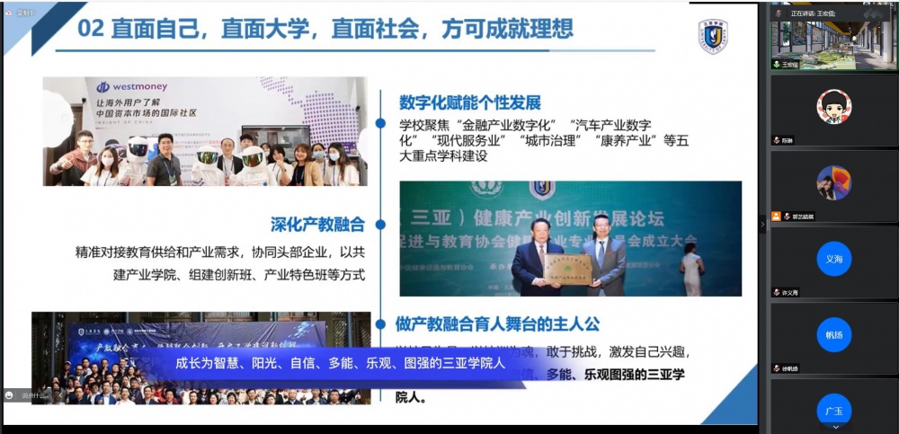 金秋九月,三亚学院国际&艺术设计学院迎来了来自全国5百多名新生。受各地疫情影响,新同学不能第一时间来到美丽校园,我们相约线上开展以“第一次”为主题的系列活动,从学校、专业、班级三个层面,帮助新生尽快熟悉大学生活,了解学院特色文化氛围、感受风景如画的美丽校园。让新生对校园生活充满憧憬,对开启筑梦之旅充满期待。