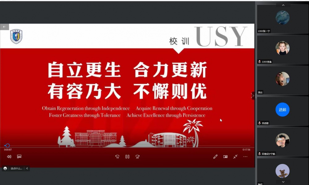 9月17日,通过网络会议的形式辅导员与同学们初见面并寄语。自我介绍的同时,通过线上举行了竞选临时负责人的小型活动。并初步建立班级文化和目标,助同学们坚定信念,砥砺奋进。