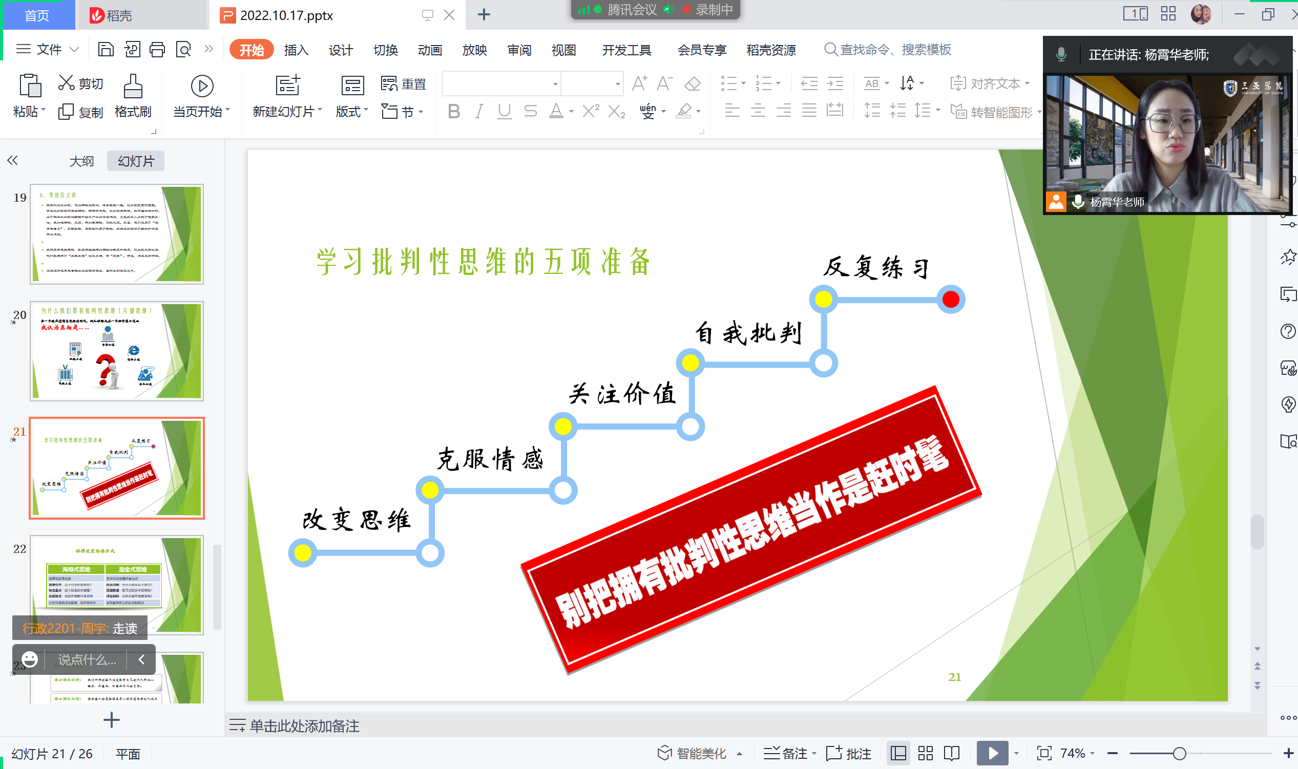 本次活动作为新生本学期的第一堂活动课程,参加同学多为大一新生,活动的开始也为各位同学梳理了进入大学了的各种问题困难,同学们活动反应良好,活动参与积极。主动适应和被动适应是相互联系的,缺一不可。被动的适应,作为生存的基础,而主动适应成为发展的目的。要学会综合这两点,才能使自己的大学生活游刃有余。