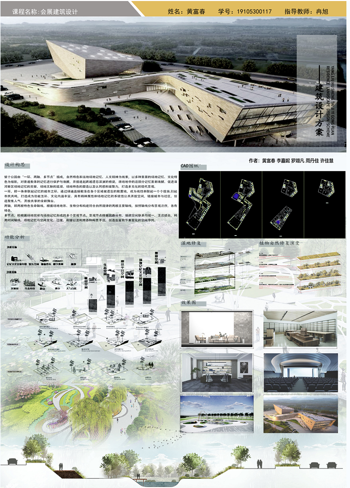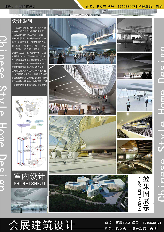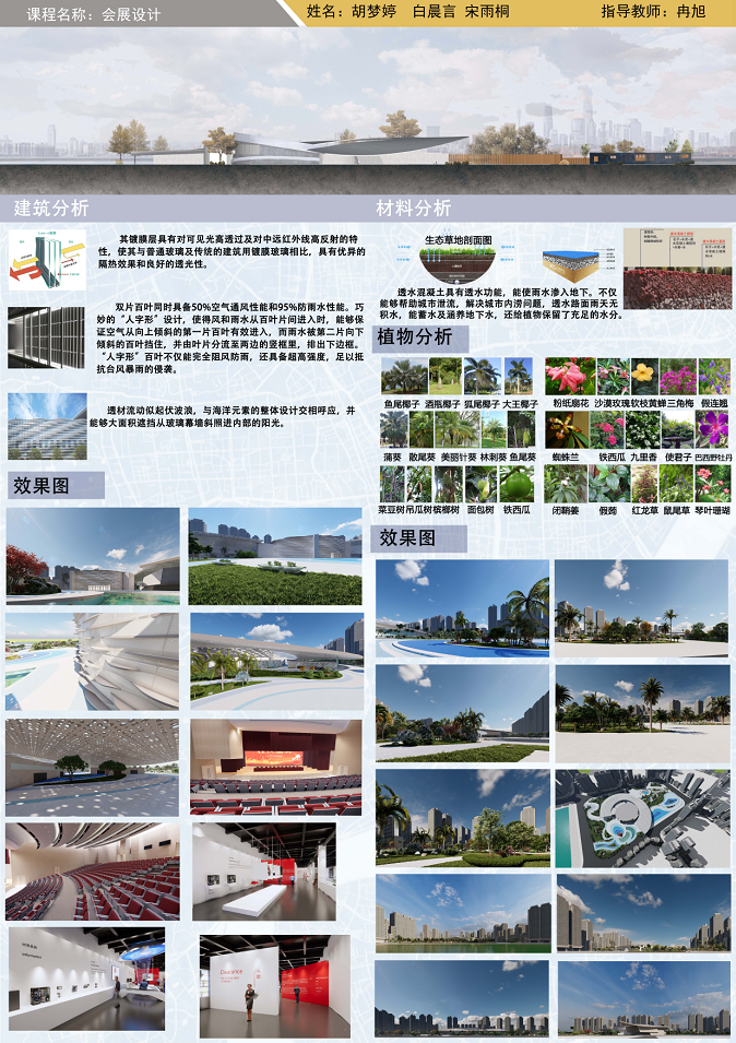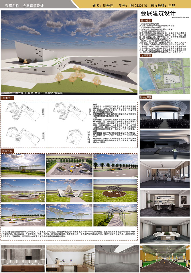 “会展建筑设计”是环境设计专业的一门专业方向核心课,是大四上半年重要的一门课程。通过本课程的学习,使学生了解会展建筑设计基本原理与方法方法的考查,培养学生的独立思维和主动探索的创新精神,掌握解决“会展建筑设计”的专业分析能力、表现能力与设计能力,通过课程设计,可以让学生在实践中将所学知识融会贯通,为毕业设计以及后继的工作和专项设计奠定扎实的基础。