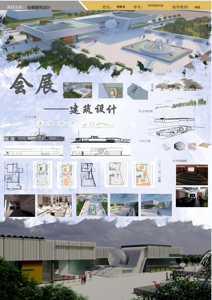 经过将近两个月的“会展建筑设计”的理论知识的学习,我们的设计也顺利完成了,回想起来颇有心得,遇到困难但其中也有收获。通过本次设计不仅是对所学知识的一种检验,也是对自己能力的一种提高。