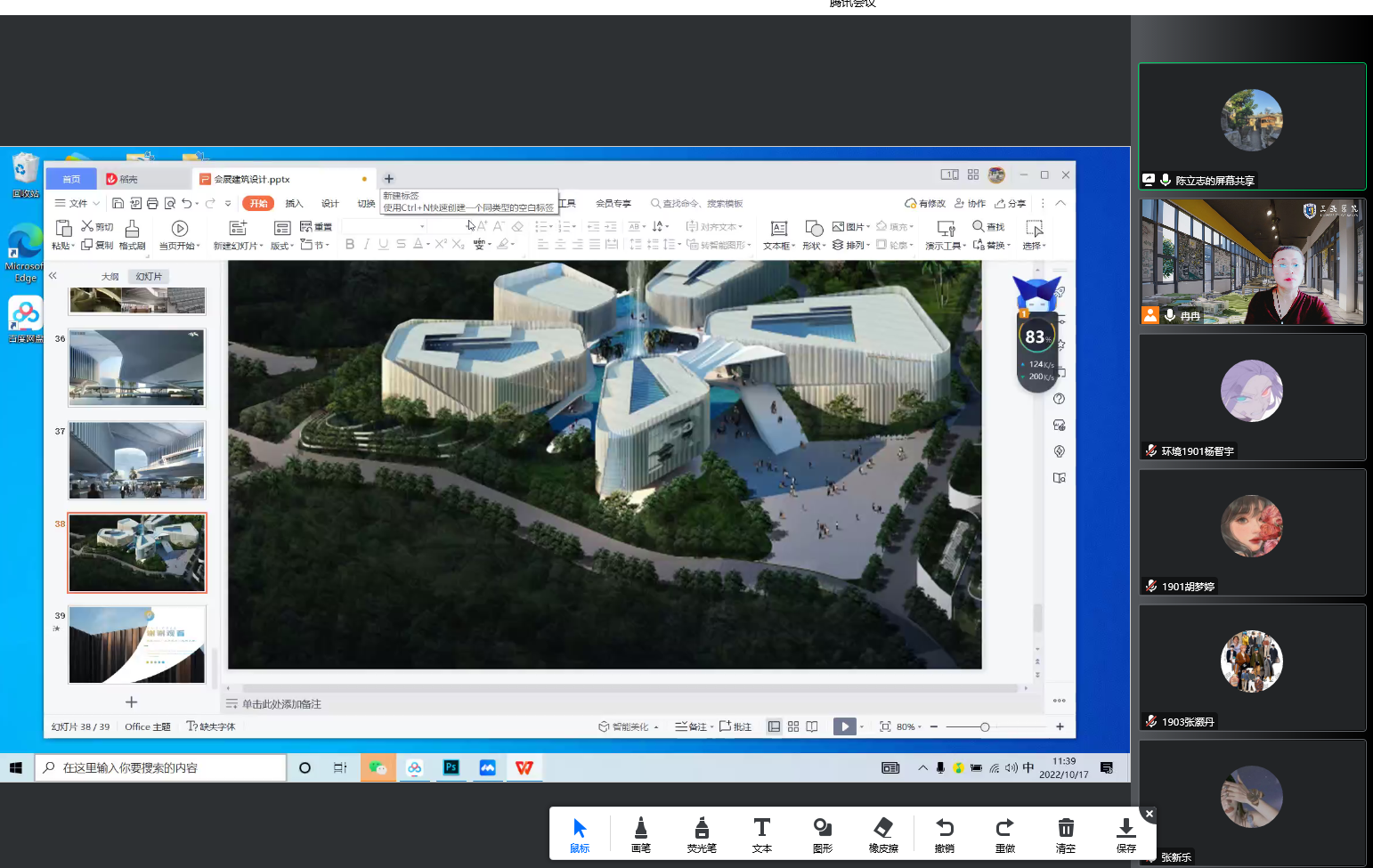 11月4日,由冉旭教授主讲的“会展建筑设计”历时8周的线上课程,在学生汇报总结老师点评的环节落下帷幕。