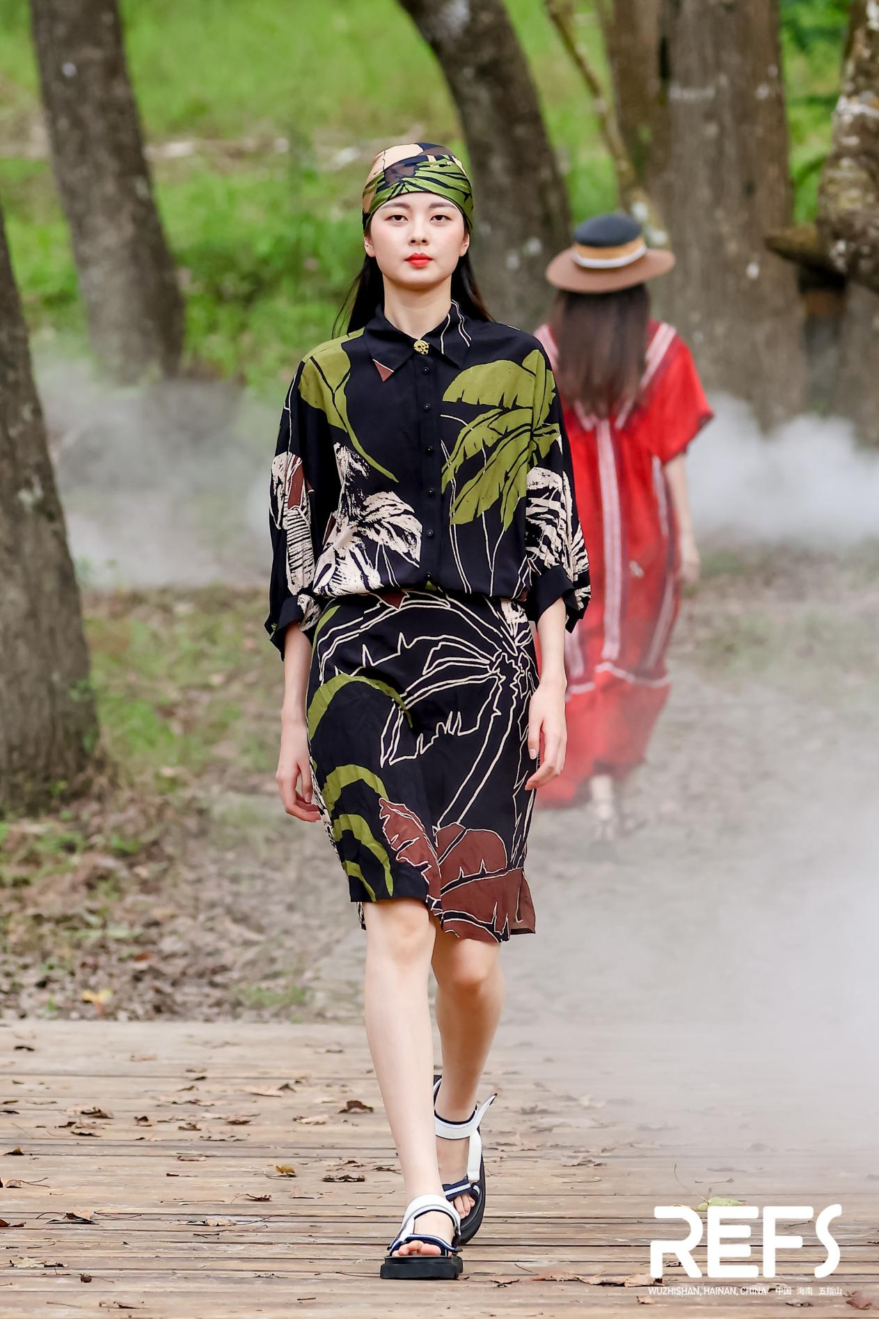 时装秀以“光遇·着锦”为主题,两个会场一个设在山水间,一个设雨林中,皆以全实景秀场打造沉浸式体验,将T台的舞美设计完美融合到热带雨林美景中,观众座位包裹在草木间,体验独特的热带雨林时装观秀体验。活动专程邀请新锐设计师品牌与五指山黎锦手工艺人合作,为传统黎锦注入全新潮流血液。黎锦设计师设计灵感来源于海南热带雨林国家公园、黎族村落的丰富样貌,精美手工服饰,既体现浓郁的黎族文化特色,又紧跟潮流,与田野、乡村、花草等天然背景完美融合。