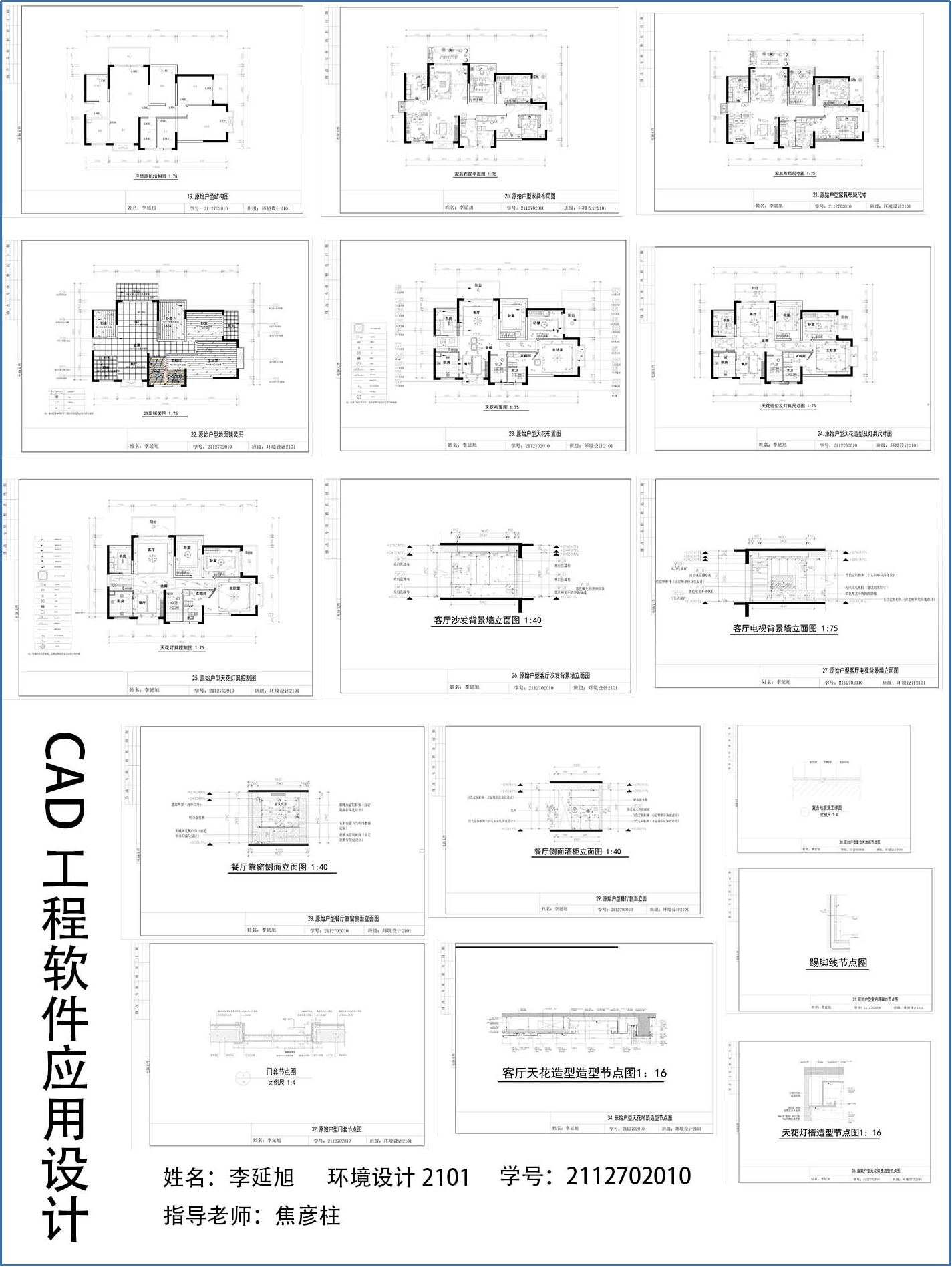 2022年12月,由于疫情原因,“工程软件应用设计”课程都是在线上进行。根据同学门的大作业成果表现来看,大家都很好地掌握工程软件的应用。工程软件CAD是环境设计专业的基本设计工具,掌握工程软件是进行专业设计的前提,是本专业进修之路的第一道关卡,也是未来求职就业的必备技能。面对专业学习的第一关,我们一起来看一看,2021级环境设计专业的优秀学子是如何闯关升级的呢?