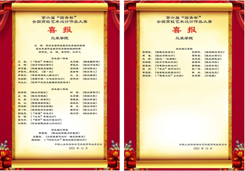 12月16日,由中国人生科学学会艺术教育专业委员会组织的第六届“国青杯”全国高校艺术设计作品大赛,通过组委会的严格评审,我院产品设计专业的学生报送作品分别获得学生组不同类别设计奖项,个人一等奖13项;个人二等奖17项;个人三等奖16项。