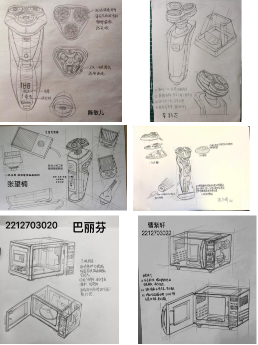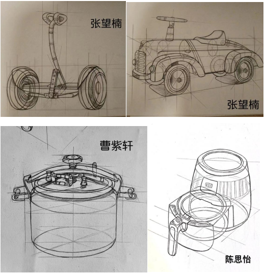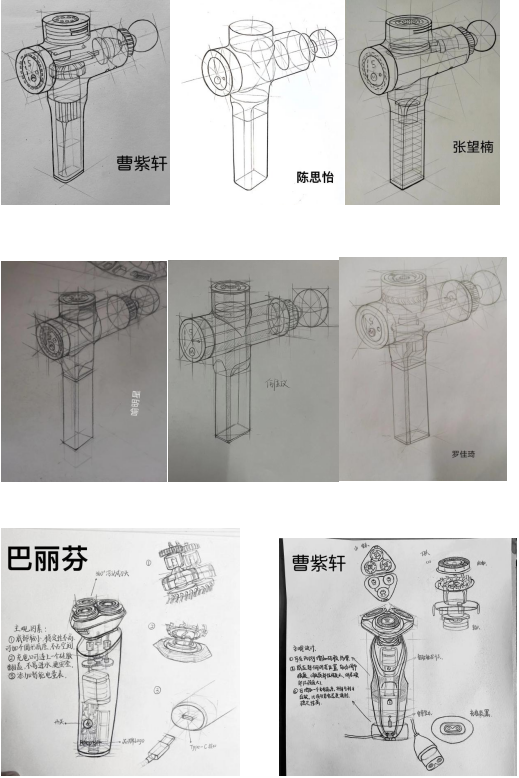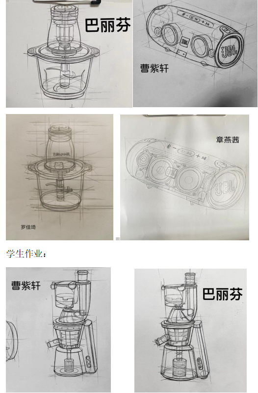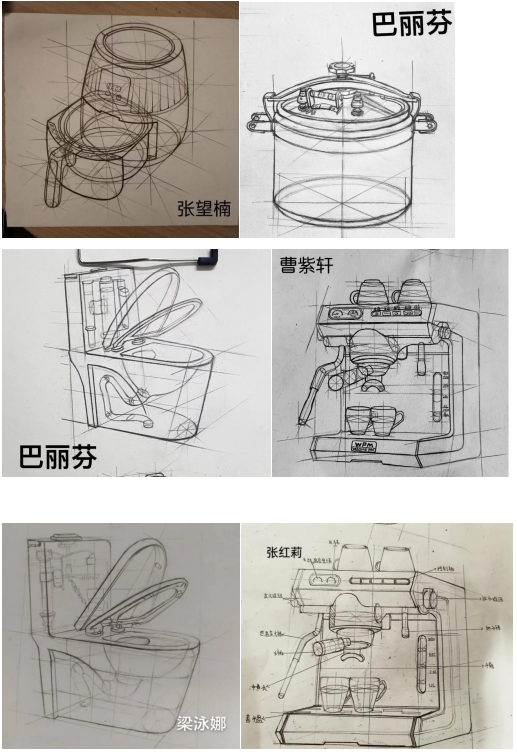 实物造型写生与优秀设计素描临摹结合,进一步了解传统素描与产品设计素描的区别于联系。临摹的同时,将同类产品图片用讲解的形式引入教学中,让学生通过临摹及实物的对照,更进一步锻炼学生的观察能力及空间感知能力,让学生尽快对物体产生一种特有观察方式,所有物体都要用透视的眼光去观察。
