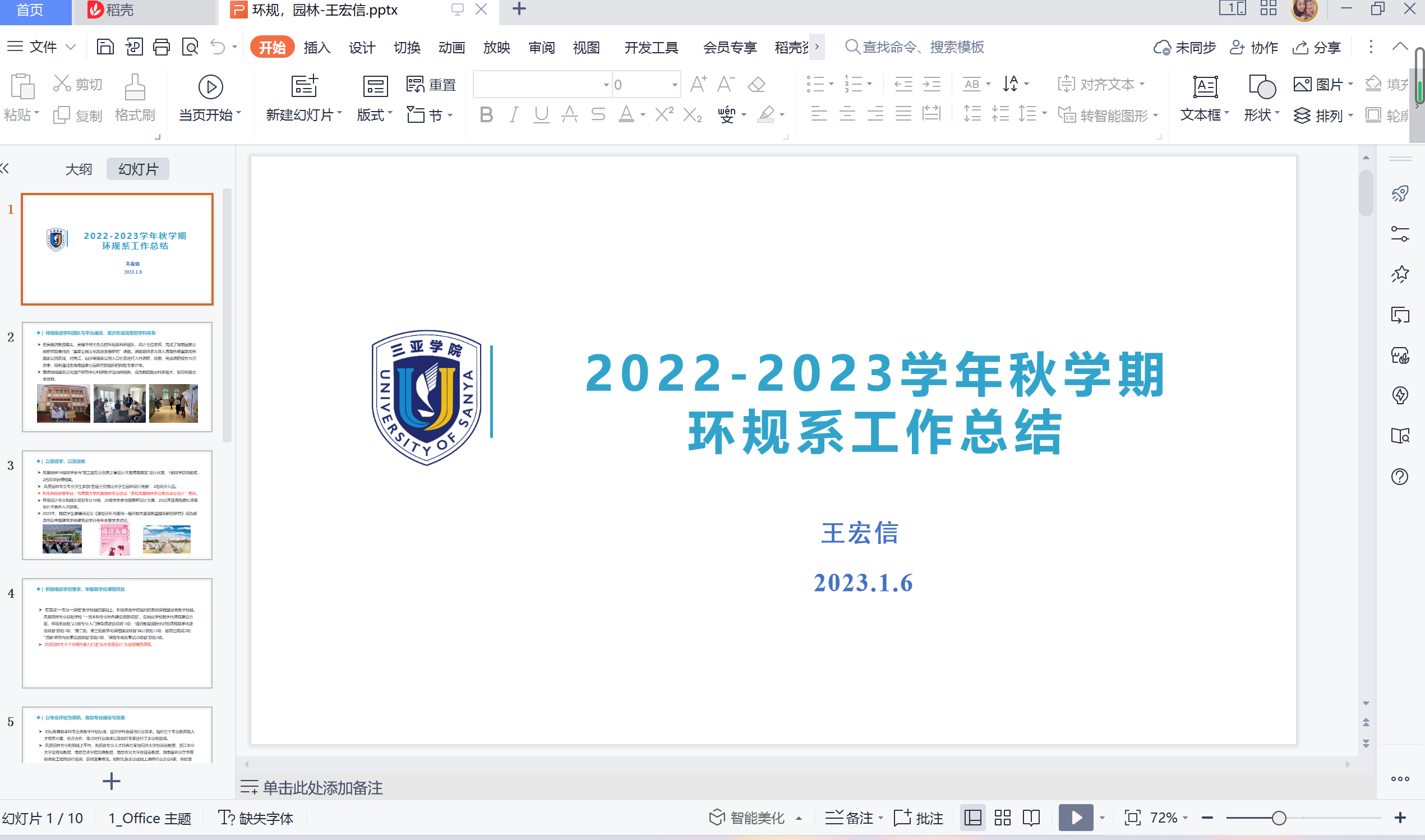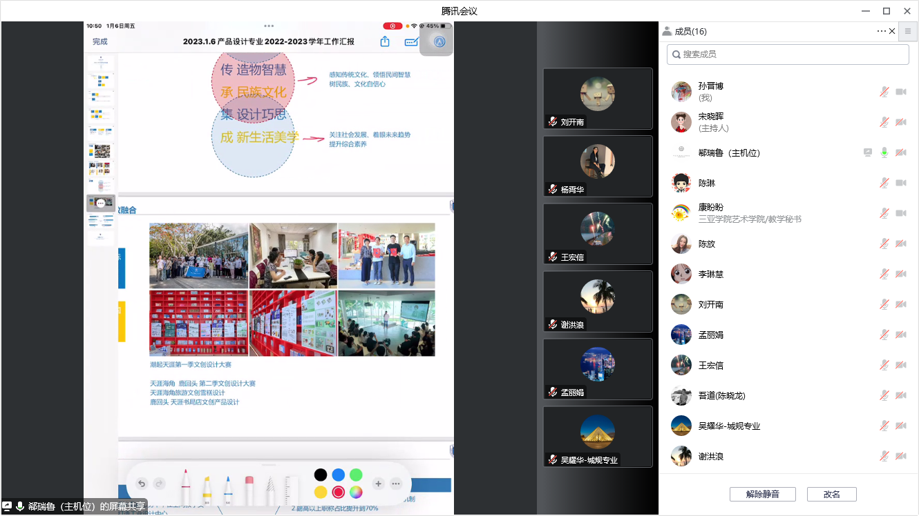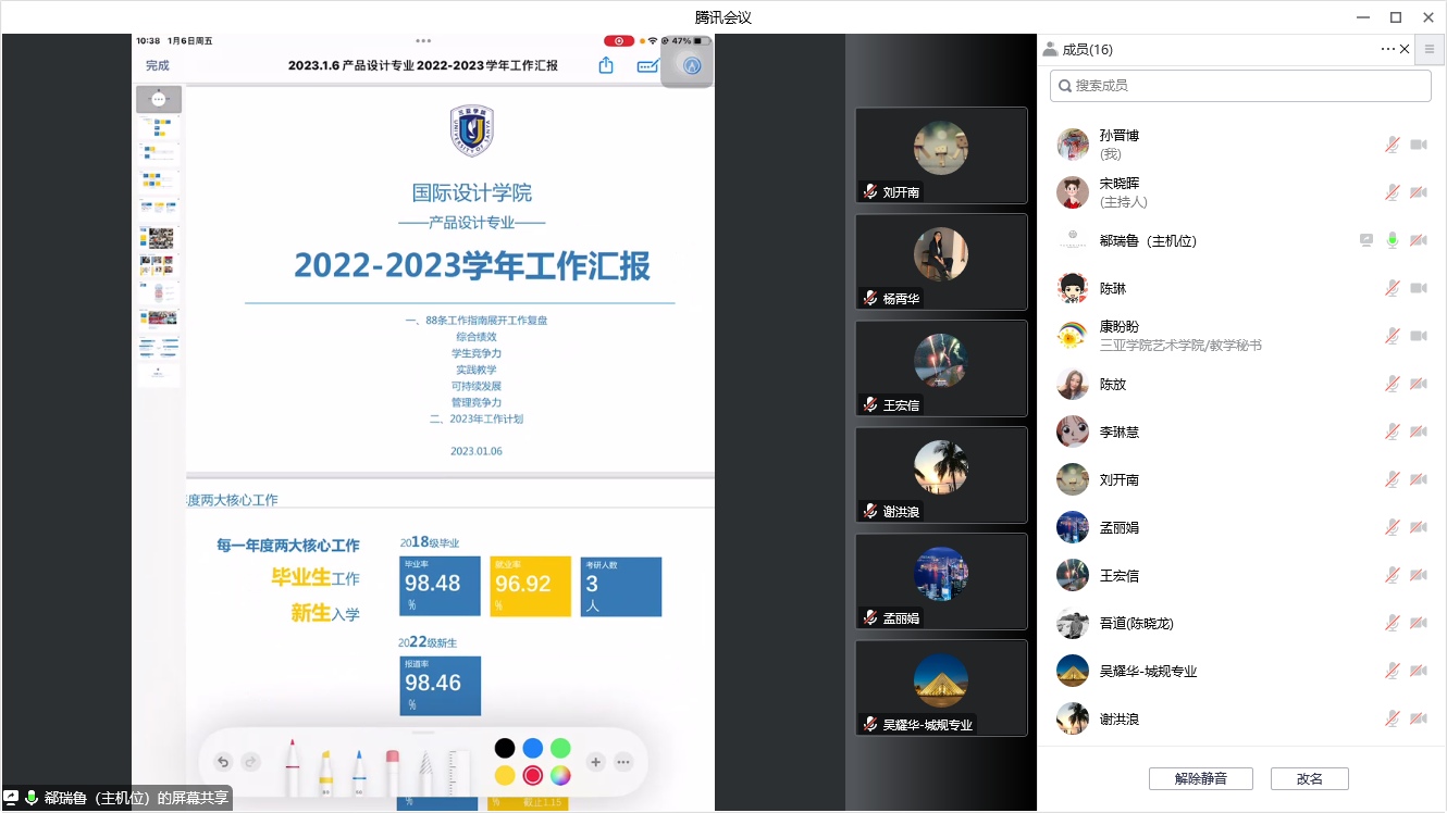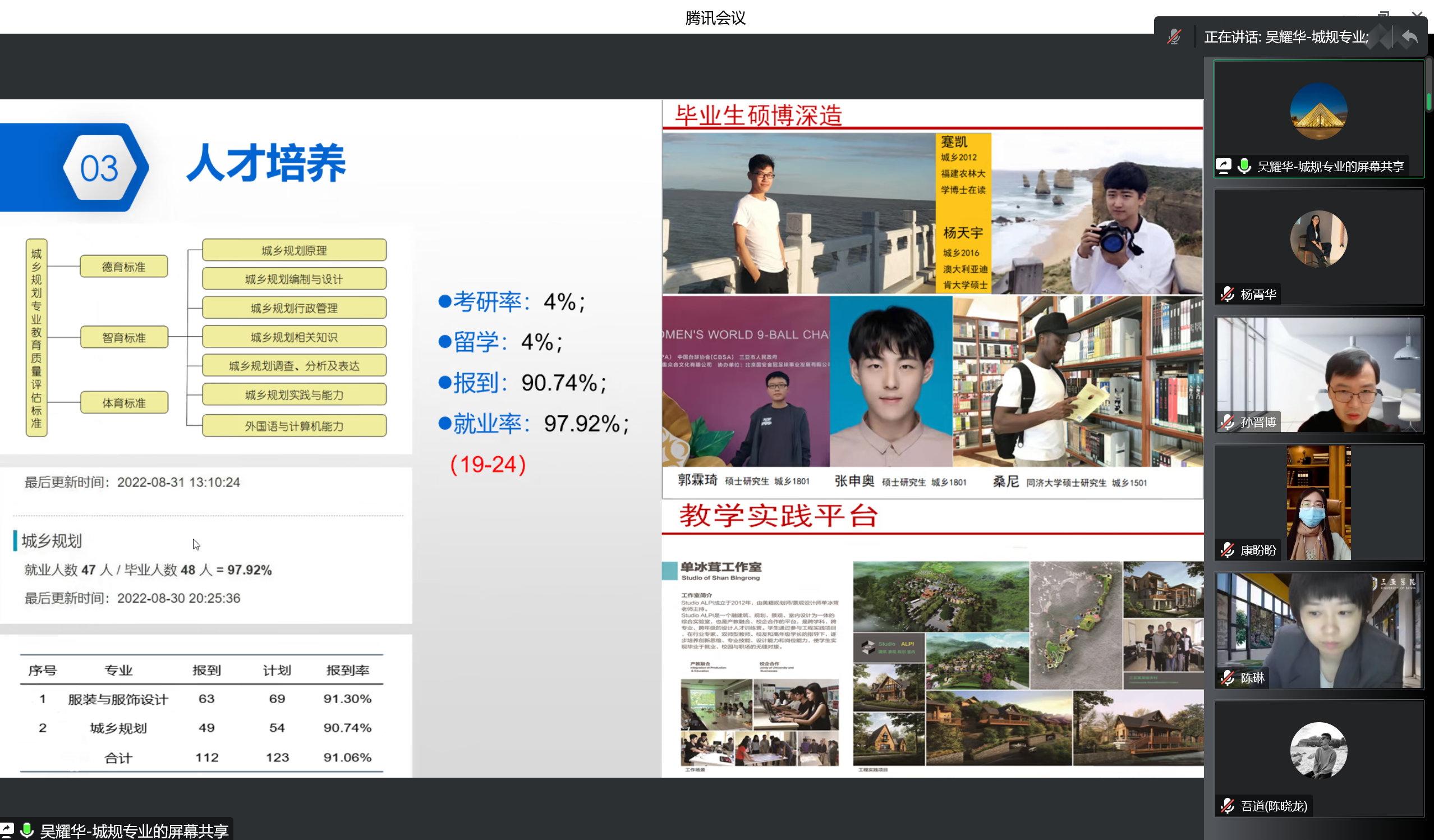 环规系主任兼园林专业负责人王宏信博士从持续推进学科团队与平台建设,逐步形成完整的学科体系到以赛促学,以赛促教,积极响应学校要求,申报数字化课程项目积极推动专硕点建设等方面对环规系整体进行复盘汇报,并提出多组数据展现环规系整体科研成果迈入“质”的阶段;并通过介绍风景园林专业获得学校委托“凰家云水景观提升”教学项目提出园林专业未来课程改革新的活力。