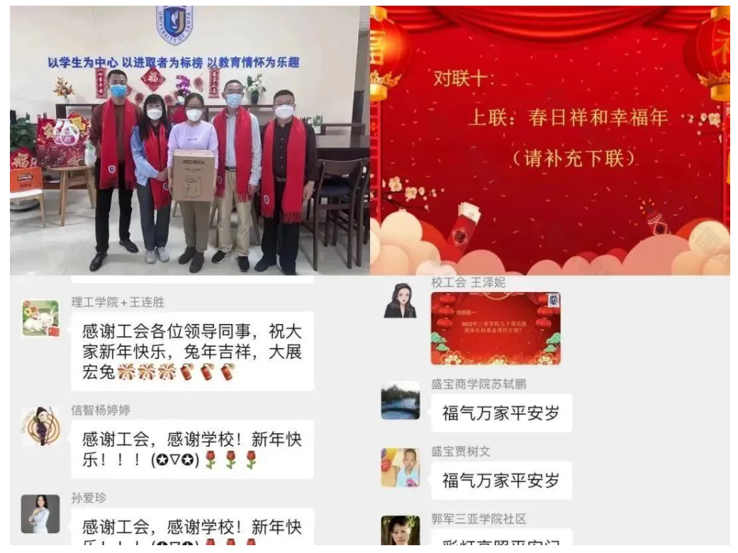 为迎接新春佳节,活跃节日气氛,学校还举行了丰富多彩的迎新春活动。1月22日上午,学校通过线上形式举行春节网络团拜,教职工和学生线上猜灯谜、对对联、新春集福、幸运大抽奖,以别样形式共迎农历新年。