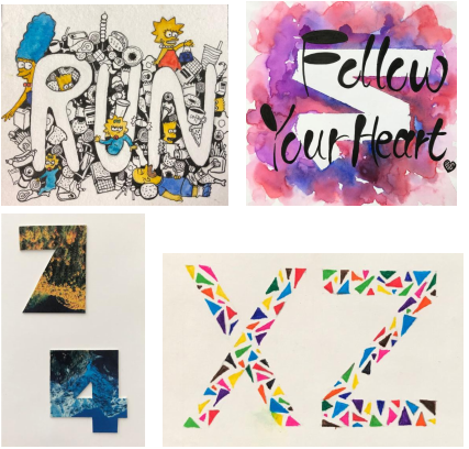 设计说明:该设计以本人敬爱的人的名字每个字的首字母为创作,但是每个人对这幅画的字母理解会不一样,也就是不同的人眼里看到这幅画会想到不同的字母。