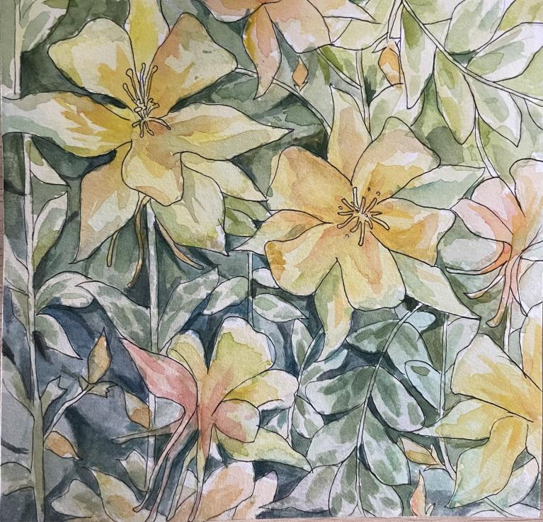 创意表现:通过“钢笔淡彩”形式表现植物的固有色,充分运用水彩的流动性表现色彩的渐变。