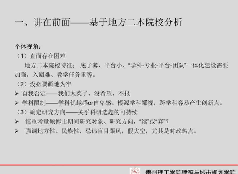 王东教授首先针对地方二本院校的特点从个人视角分析了课题申报的难度,并指出不要自我否定,要有足够的信心大胆申报,选题要强调地方性、民族性,忌讳盲目跟风和假大空。