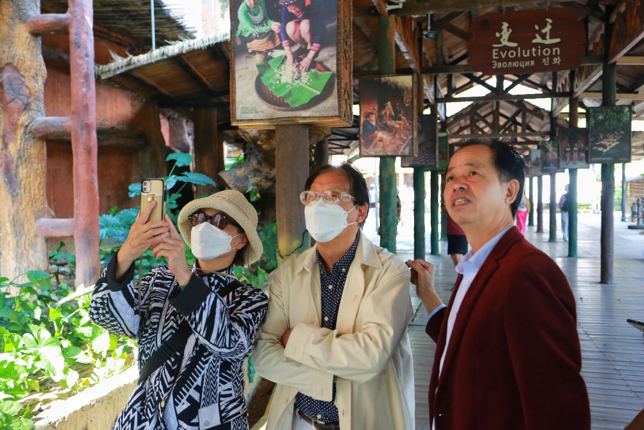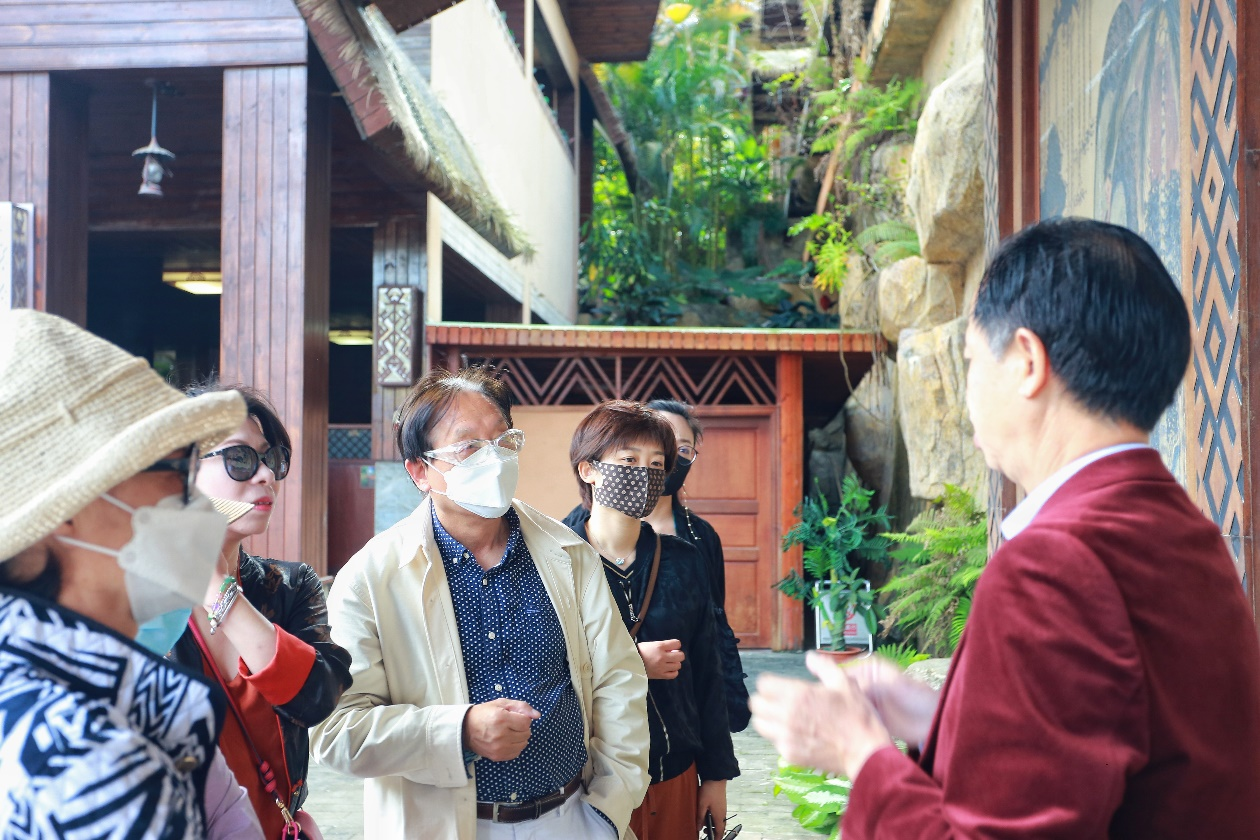 胡项城,国际艺术家,因其个人独特的旅居经历而有着对不同民族、地域文化艺术的深入研究,同时他在教育,生态、环保、等其他领域成就卓著并拓展着其创作边界。此次实地考察,胡项城先生就黎苗文化的变迁及发展、国家级非物质文化遗产保护、槟榔谷文化旅游区的挖掘传承等事宜与陈国东先生进行了深入交流。