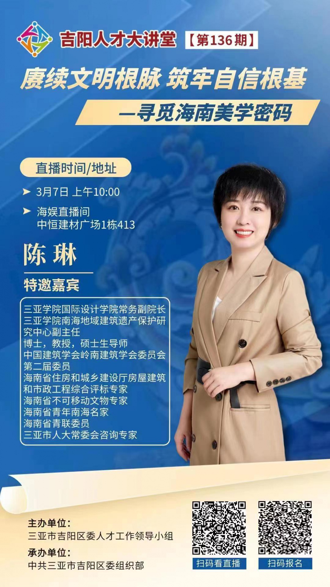 吉阳人才大讲堂【第136期】赓续文明根脉 筑牢自信根基───寻觅海南美学密码