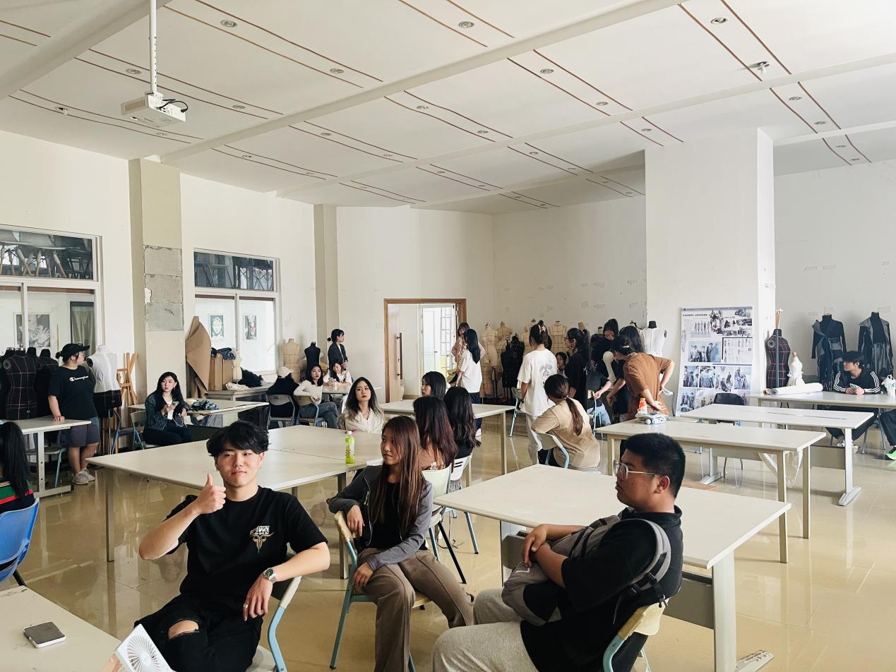 接下来,由2022级新生上台做自我介绍并分享了对于服装专业的看法及未来规划。新生黄嘉译、剡改红、何丽芹和何家硕同学浅谈了对服装的一些认识。服装设计既是商业设计又是艺术设计,“衣食住行”,衣为首,可见其自古以来的重要地位。衣服是一种商品,满足生活所需的同时也是满足人们精神追求的前端艺术品。通过一学期的学习,体会到了过程中充满了挑战。但是同学们表示出对服装的极致热爱,尤其是对民族文化图案、布料、工艺等非常感兴趣,未来将致力于把中西方文化融合并创立属于自己的品牌为目标。