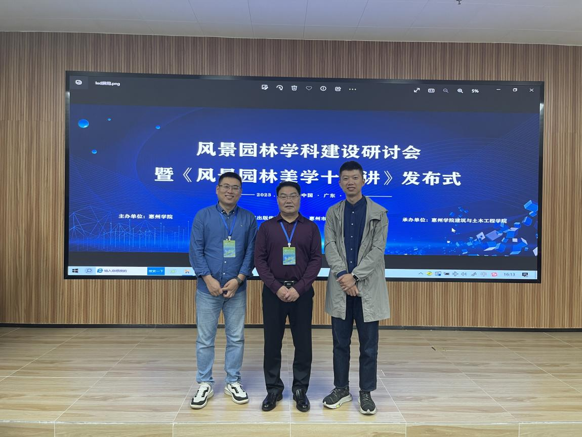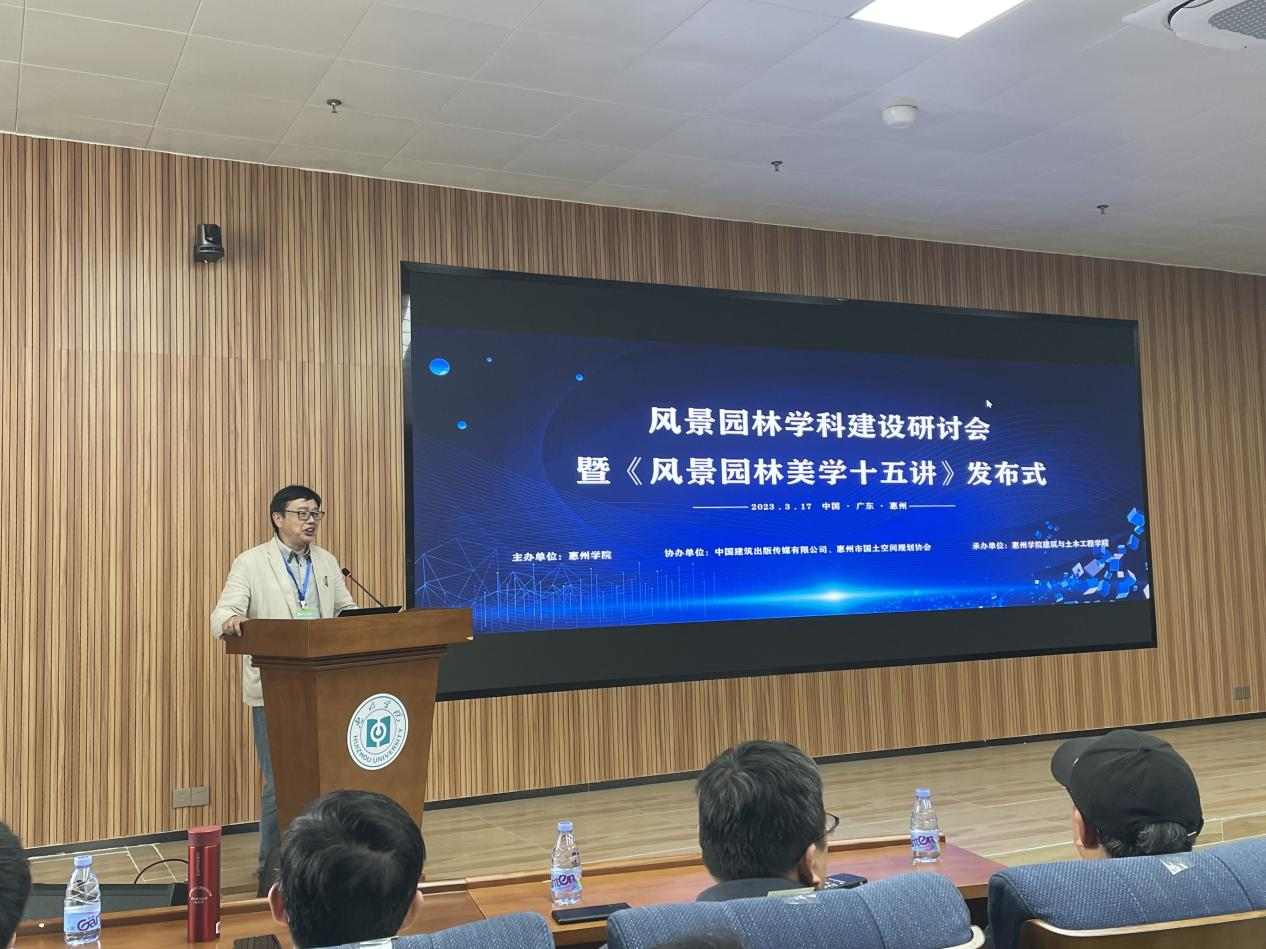 3月17日上午,风景园林学科建设研讨会暨《风景园林美学十五讲》发布会在广东省惠州学院举行。我院环规系王宏信、陈晓龙老师参加了此次研讨会。