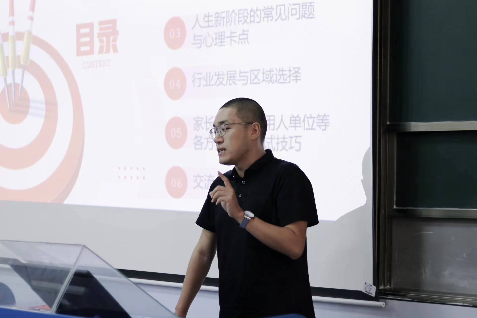 最后,白云老师还向同学们传达了学院领导的殷切期望与嘱托。学院希望同学们要珍惜自己的毕业生身份,充分了解用人单位招聘对于学生的要求。同时,学院希望同学们可以静下心来,调整心态,在寻找就业方向的过程中,最终发现自我、定义自我、发展自我。