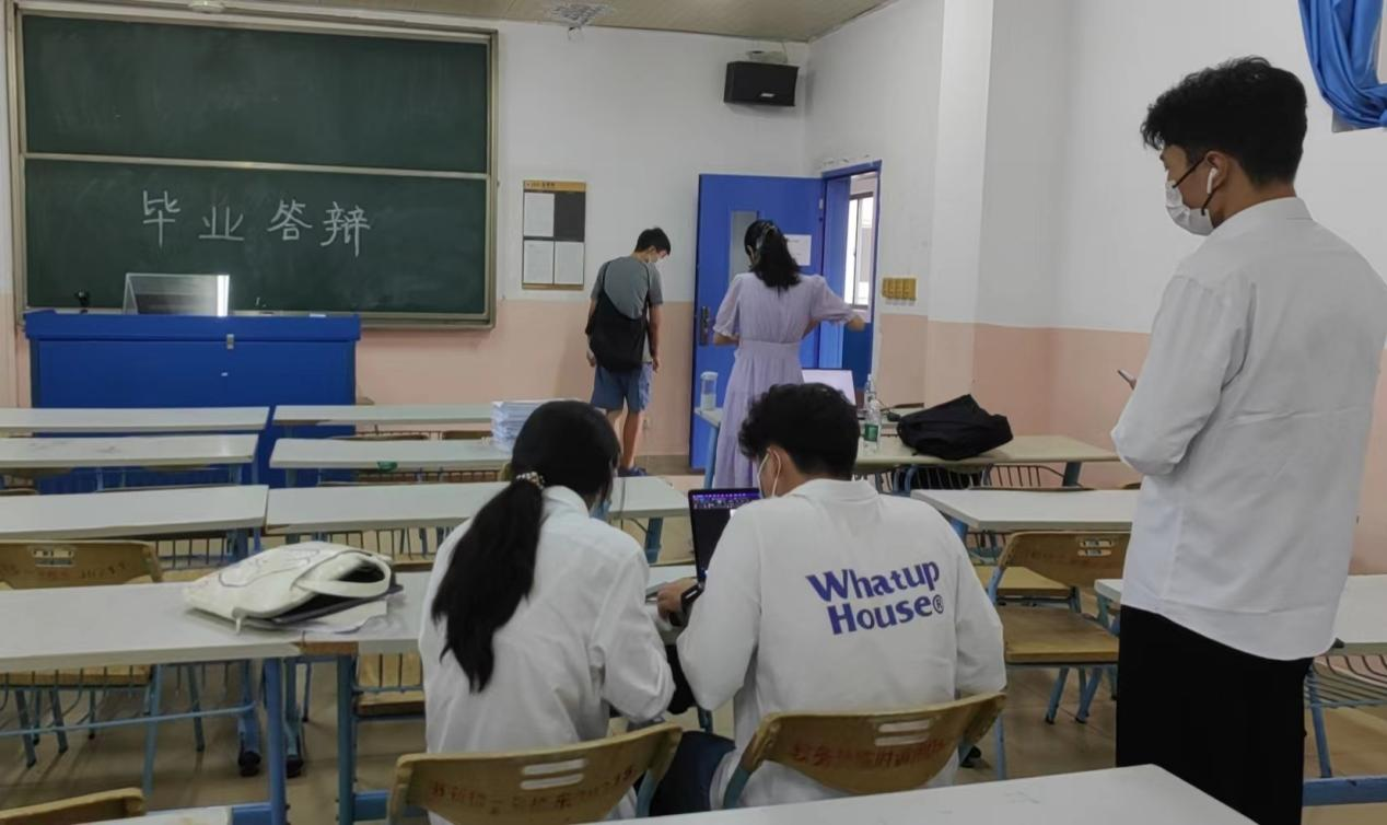 参加答辩的同学早已准备就绪,等待大学期间最后一场实战性的“考试”。他们在答辩前都经过了论文开题、中期检查、最终论文审查、论文盲评等几个阶段精心的准备,阐述自己论文的选题目的、理论框架、研究问题的方法及其实际意义。