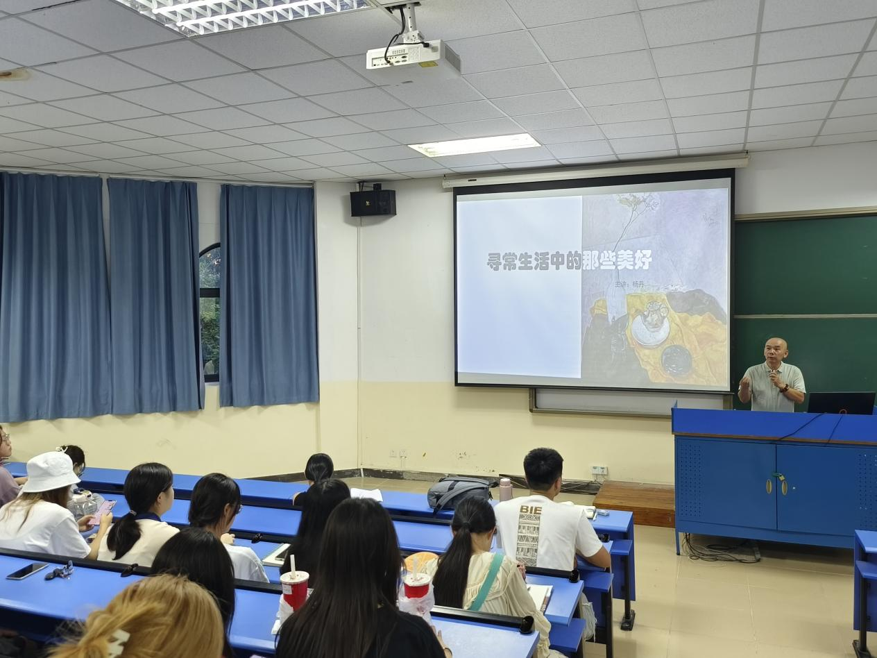 2023年5月30日晚上19点,一场题为“寻常生活中的那些美好”的讲座在5东412教室举行,主讲人是艺术学院的杨丹老师。前来参加讲座的学生有来至不同学院和不同专业约130多人。